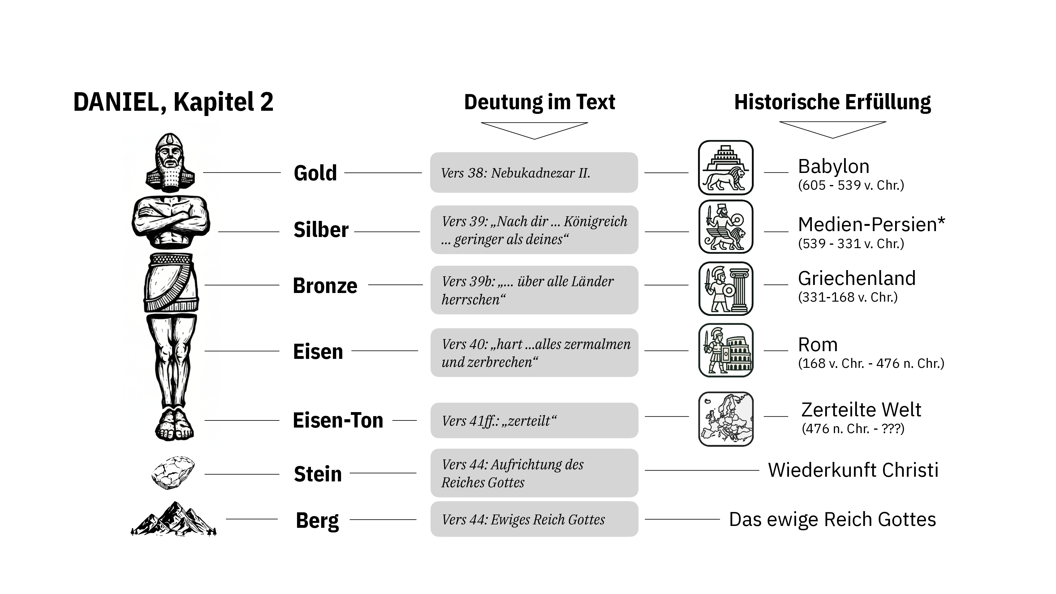 Die Metalle symbolisieren antike Weltreiche. (Dan 2,36-39)